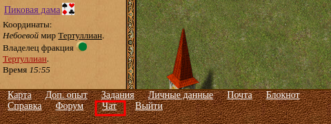 Теперь при нажатии ссылки [Чат], чат открывается в новой вкладке, а в окне игры автоматически пропадает. Что бы опять увидеть чат в окне игры нужно обновить страницу.